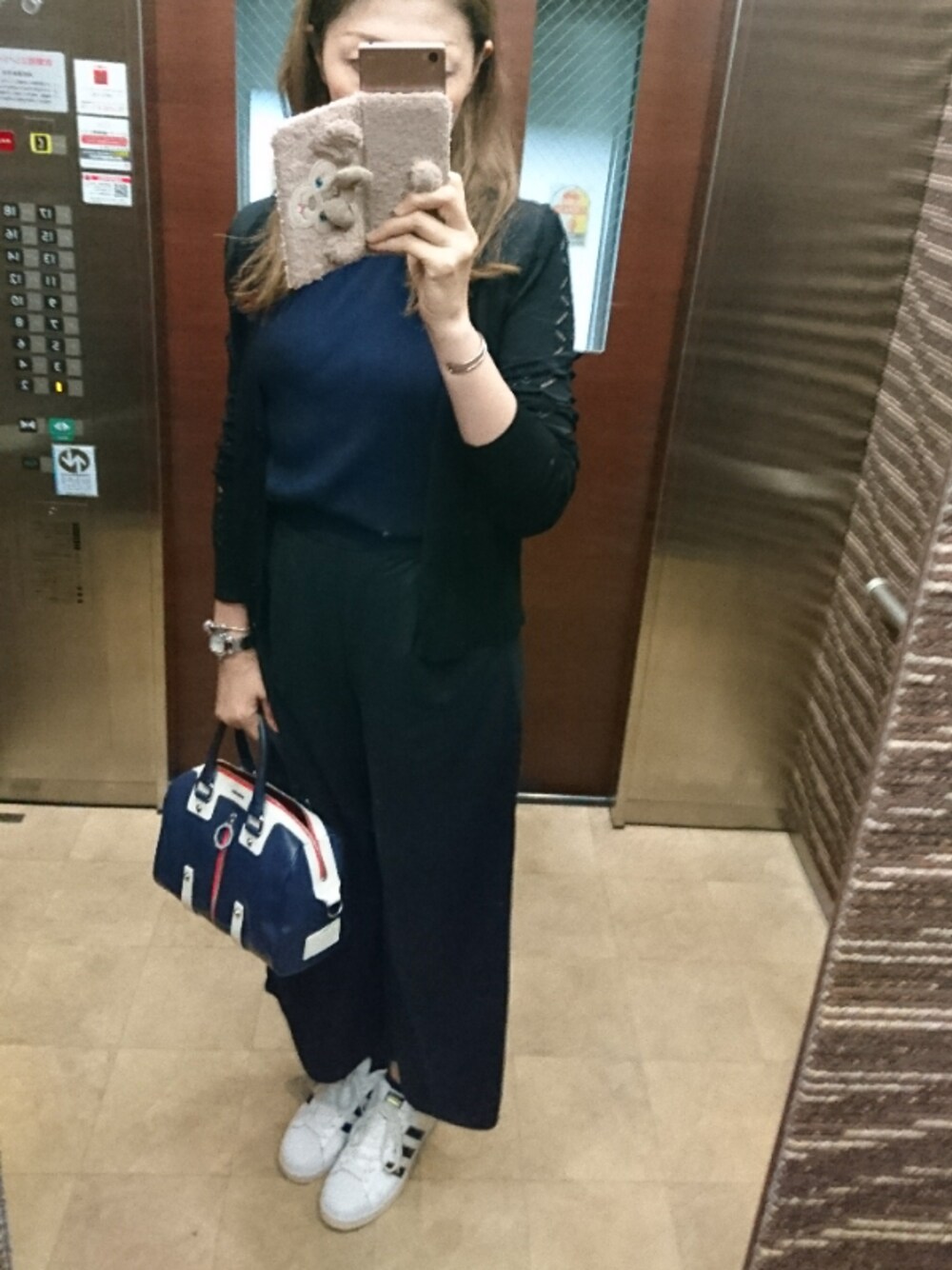 今日はちびの学校で 茶話会と授業参観があったよ~❤️ そんな今日のコーデ❗ カットソー→GU パンツ→GU カーデ→DIESEL スニーカー→アディダス バッグ→DIESEL