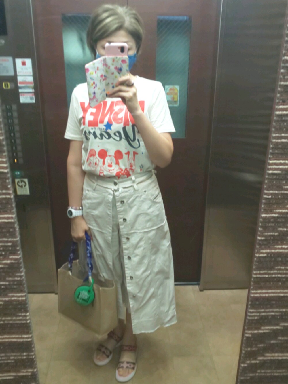 いつかのコーデ‼️ 全身ホワイト😉 そしてZARAで購入したDISNEYTシャツ オンラインで購入したんどけれど もっと思いきって大きめにしても良かったかな(^^ゞ
