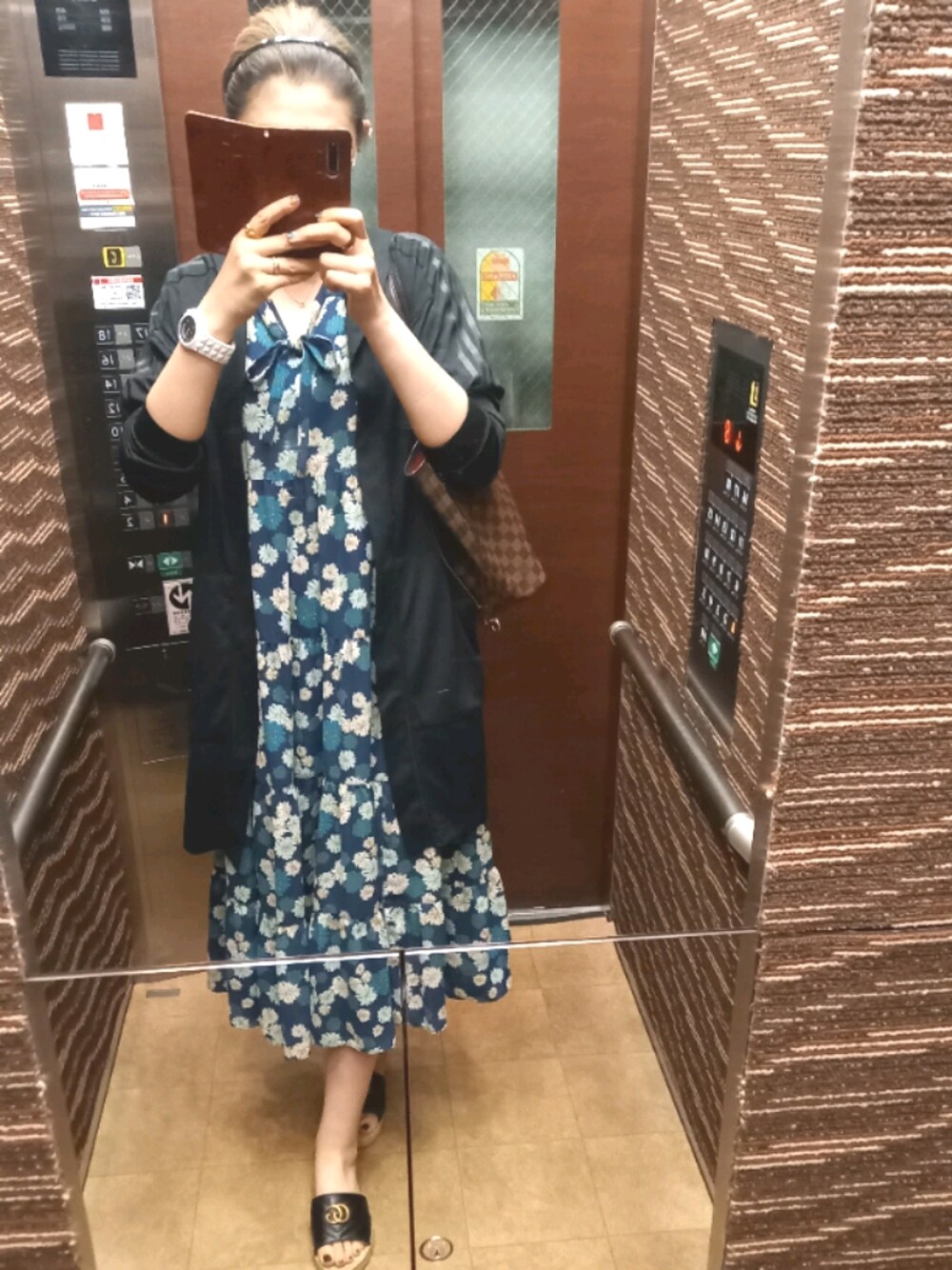 この前の日曜日のコーデ‼️ 子供たちのエレクトーン発表会2日目に UNIQLO✖️ポール&ジョーワンピを初下ろし✨ 着なれないから adidasカーデでカジュアルダウン😅
