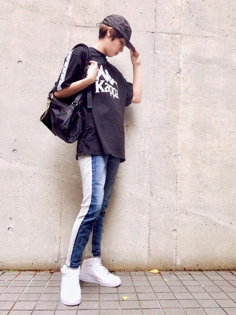 ichiのTシャツ/カットソー「【BASQUE -enthusiastic design-】Kappa/カッパ ビッグシルエット 袖ロゴライン 1/2スリーブカットソー」を使ったコーディネート