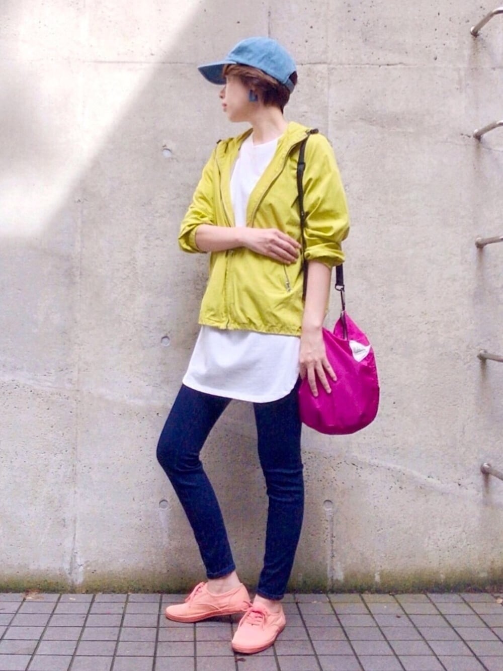 いつかどこかのアウトレットで買った パーカーでネオンカラーコーデ。 全部3千円以下のプチプラ!