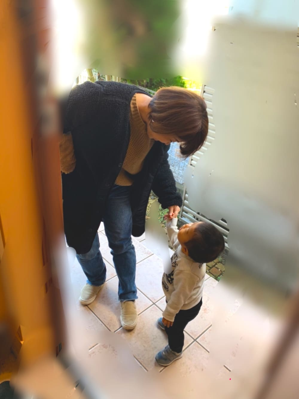 見つめ合う親子♫ 今日はあったかいね。