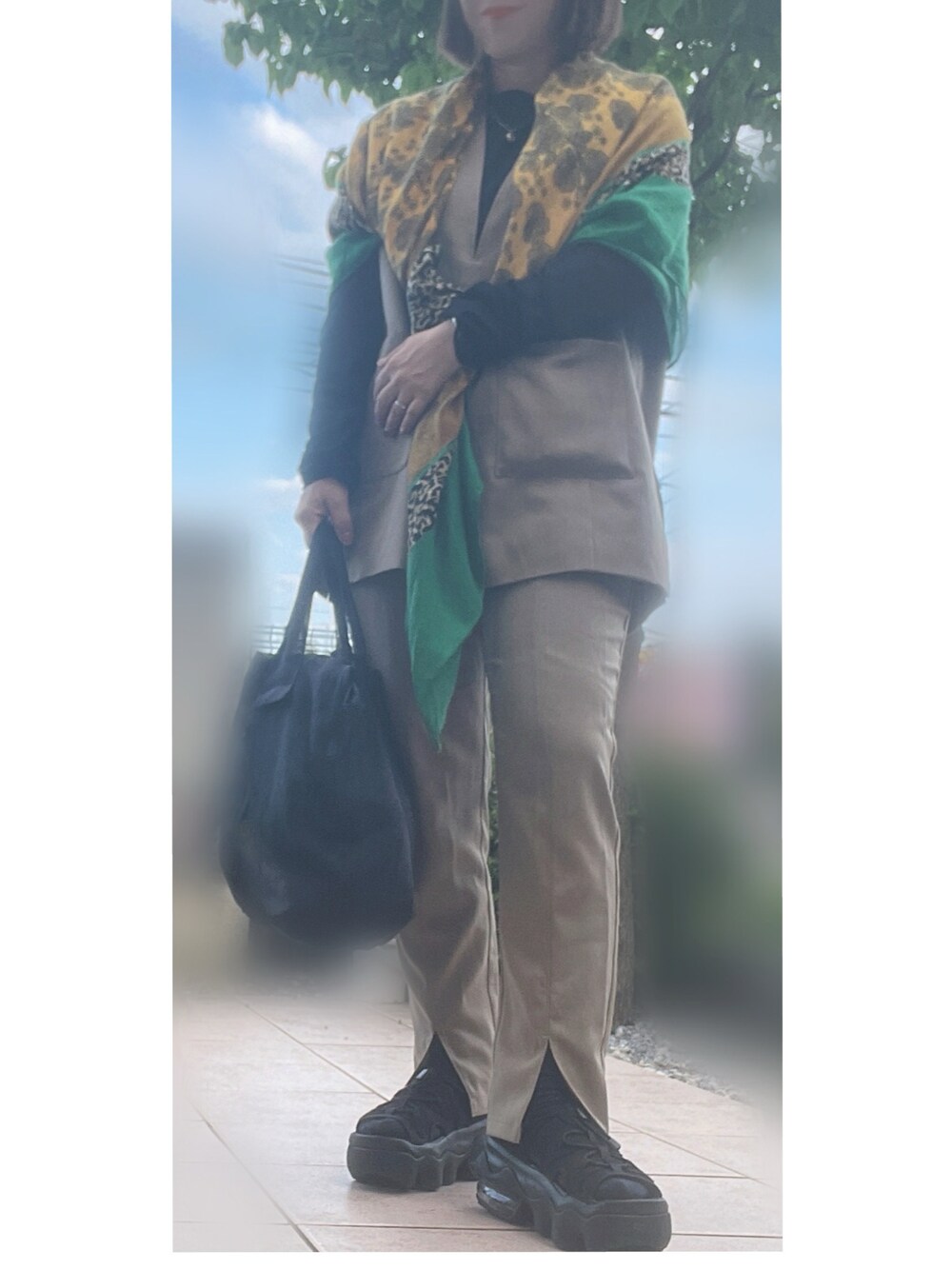 エアマックスココ、まだ素足で履かずにがんばる。 上はカチッと。 下はカジュアル。 #低身長コーデ#骨スト#エアマックスココ