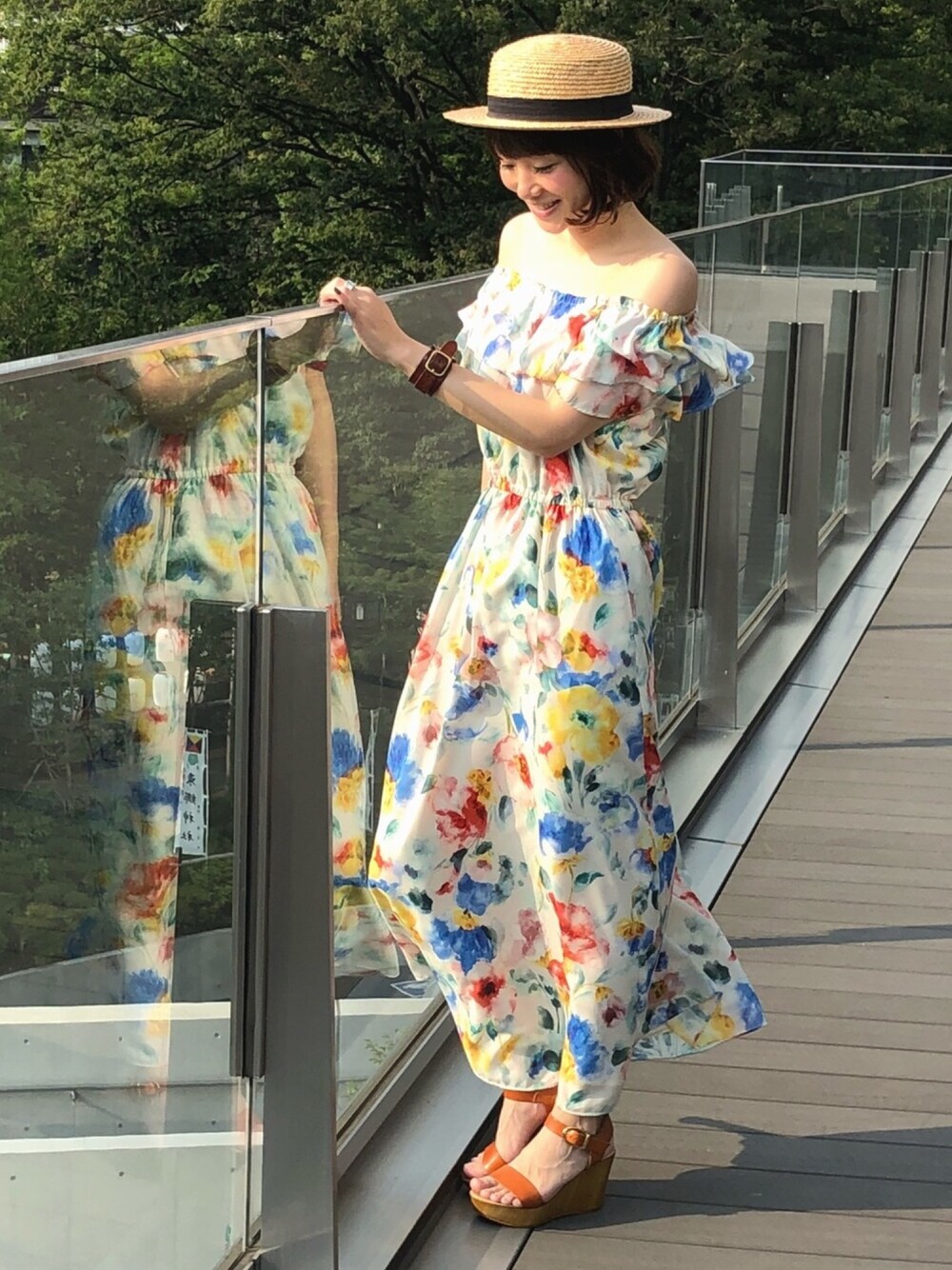 ひろまちのワンピース「CAROLINA GLASER / オリジナル 2WAYフラワーロングワンピース」を使ったコーディネート