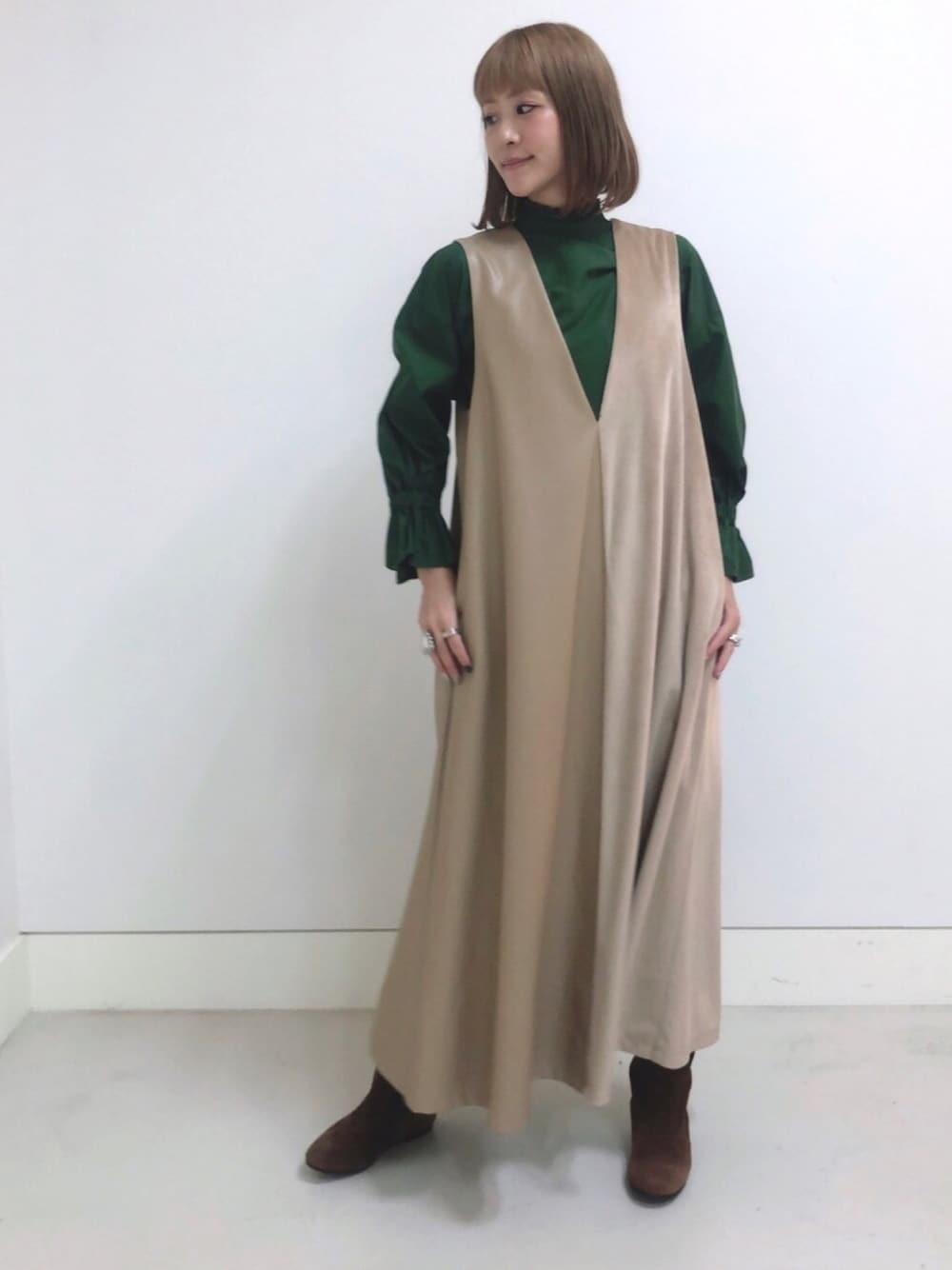 ひろまち(CAROLINA GLASER)のワンピース「CAROLINA GLASER / 合皮&ベロア ロングワンピース」を使ったコーディネート