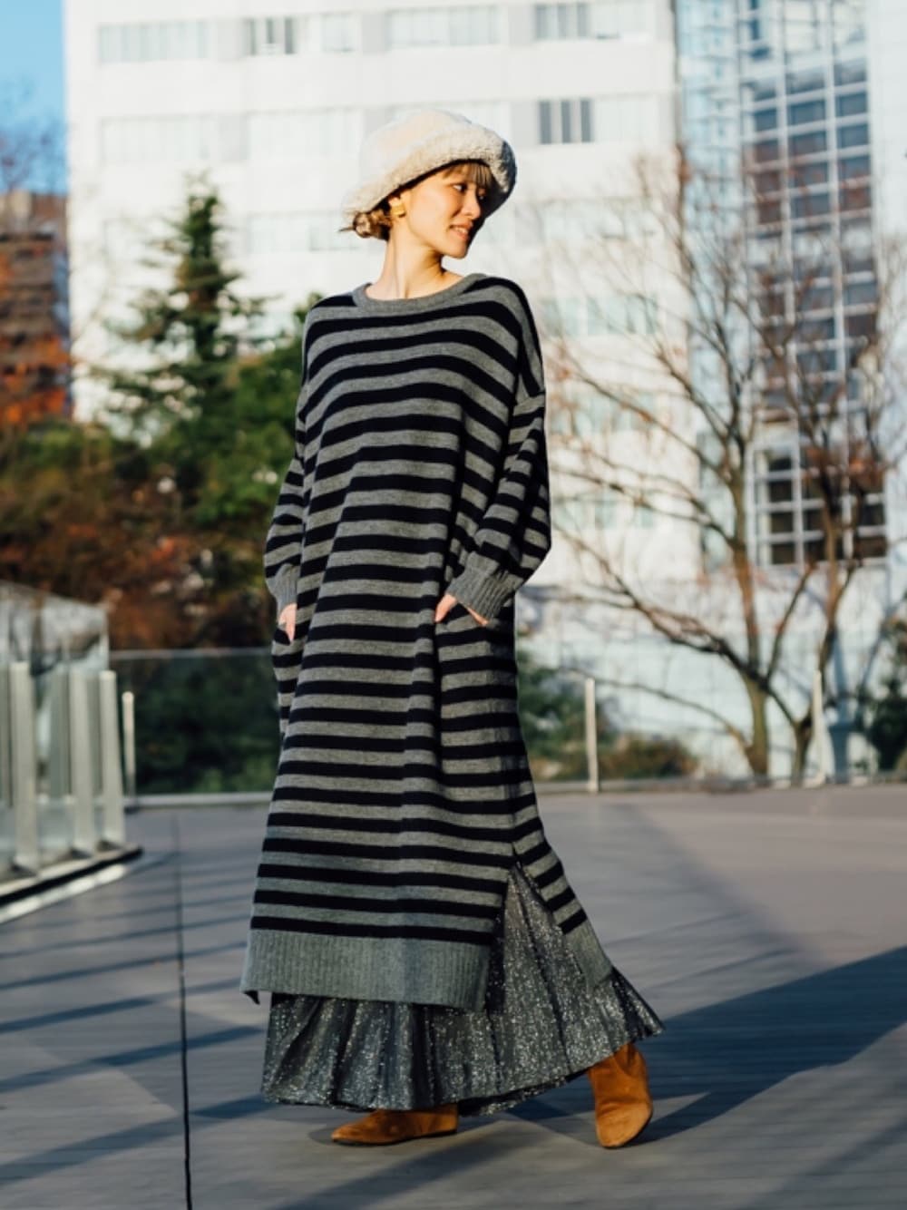 ひろまち(CAROLINA GLASER)のワンピース「CAROLINA GLASER / ニットボーダー ワンピース」を使ったコーディネート