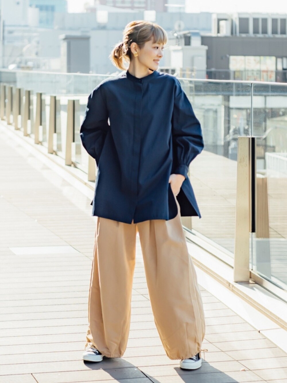キレイめブラウスにワイドパンツを合わせた、抜け感コーデ。 パンツの裾は紐でシルエット変更可能で、 トップスに合わせてワイドにも ストレートにもお楽しみいただけます♡ ブラウスも一見マニッシュですが、 ボリュームスリーブで フェミニンを忘れないデザインがポイントです。 instagram☞aicooooo.o