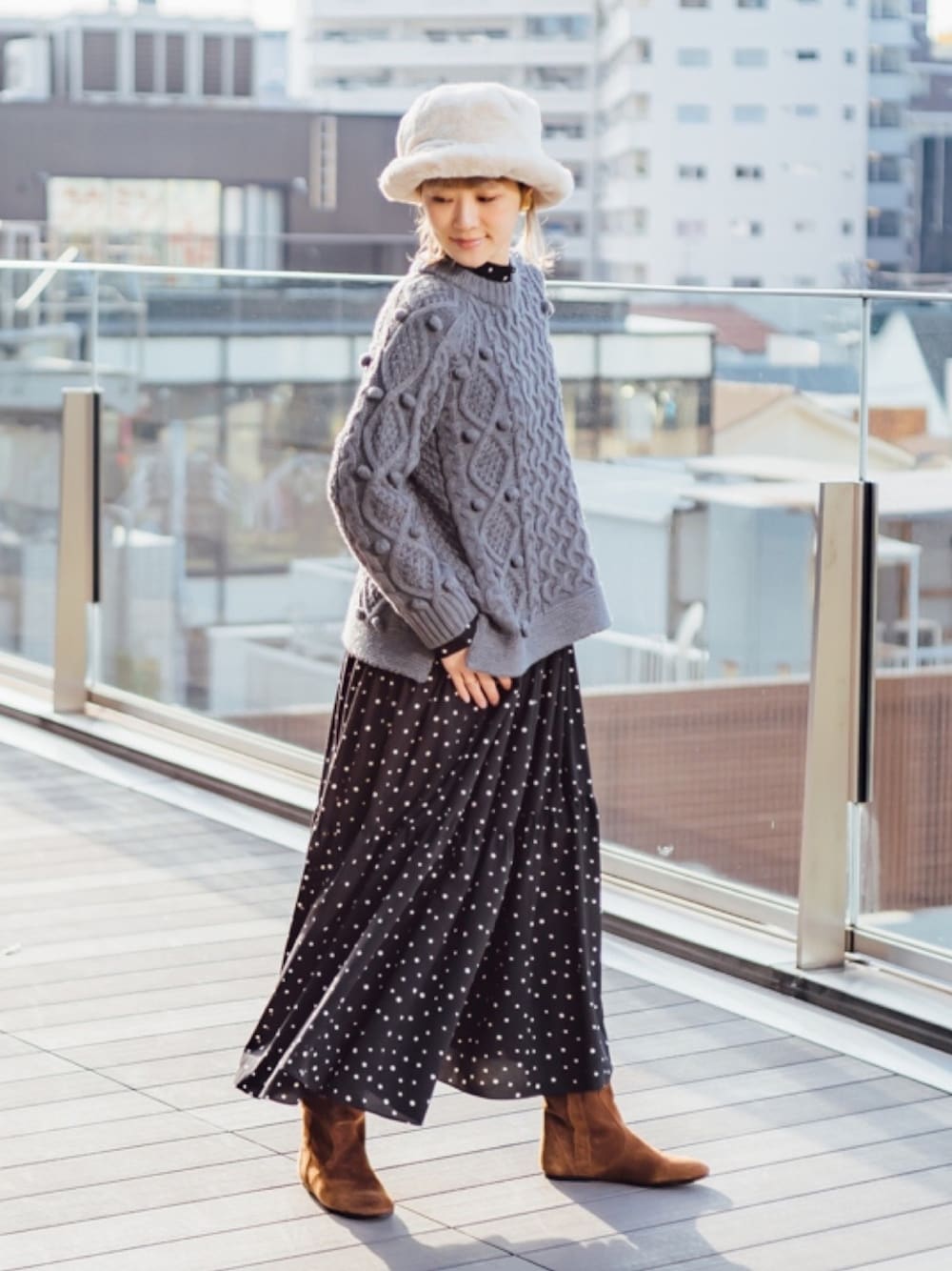 女子力高めの冬コーデ♡ ポンポン付きのニットはサイドにスリット入りで今年らしい雰囲気に。 ドットワンピースはこれまでも何度もご紹介させていただきましたが、 ニットはもちろん、スウェットとのレイヤードもおすすめです♡ instagram☞aicooooo.o
