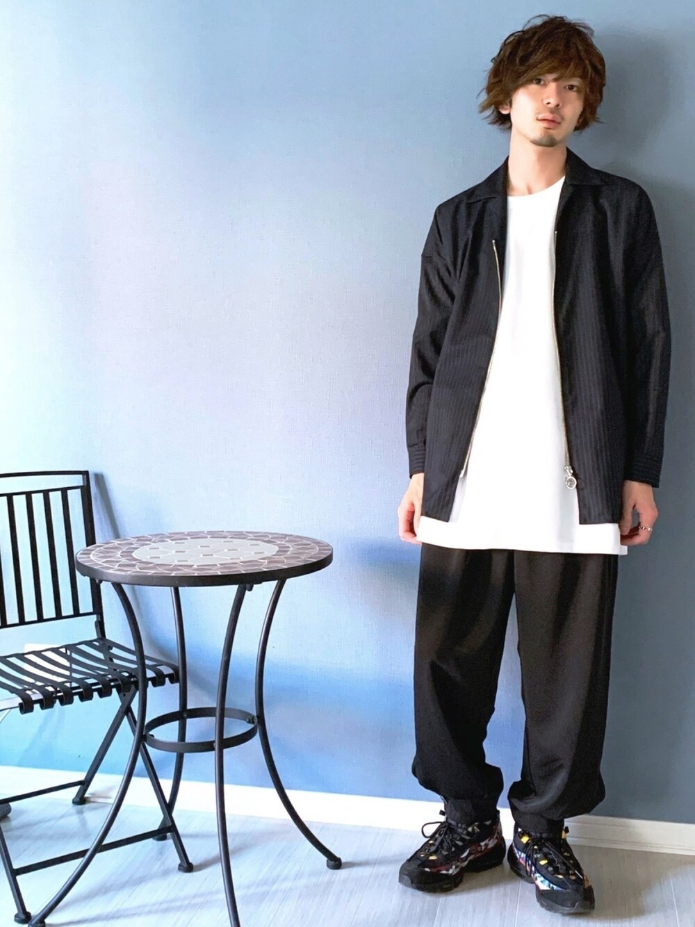 《美容師の休日》 こんにちは^^ いつも見ていただきありがとうございます。 お洒落な方々からのいいねやフォロー、。とても光栄です☺️ おうちファッション今回は白、黒、ネイビーでシンプルなので、またまた派手なエアマックス95でストリート感と遊びをいれました。 STUDIOUSのジャケット脱いだらゆるゆるな感じのコーデです。 DOOPZのカフスイージーパンツ、履きやすくて重宝してます。 ゆるいけど足首で引き締まるので、シルエットが落ち感あって良いですね^^ 中々安定しない情勢ですが、とらわれず冷静に何が大事なのか考えながら毎日を大切に過ごしたいなと思うこの頃。、。 現実受け止めながら、楽しいことも考えよう‼️😆