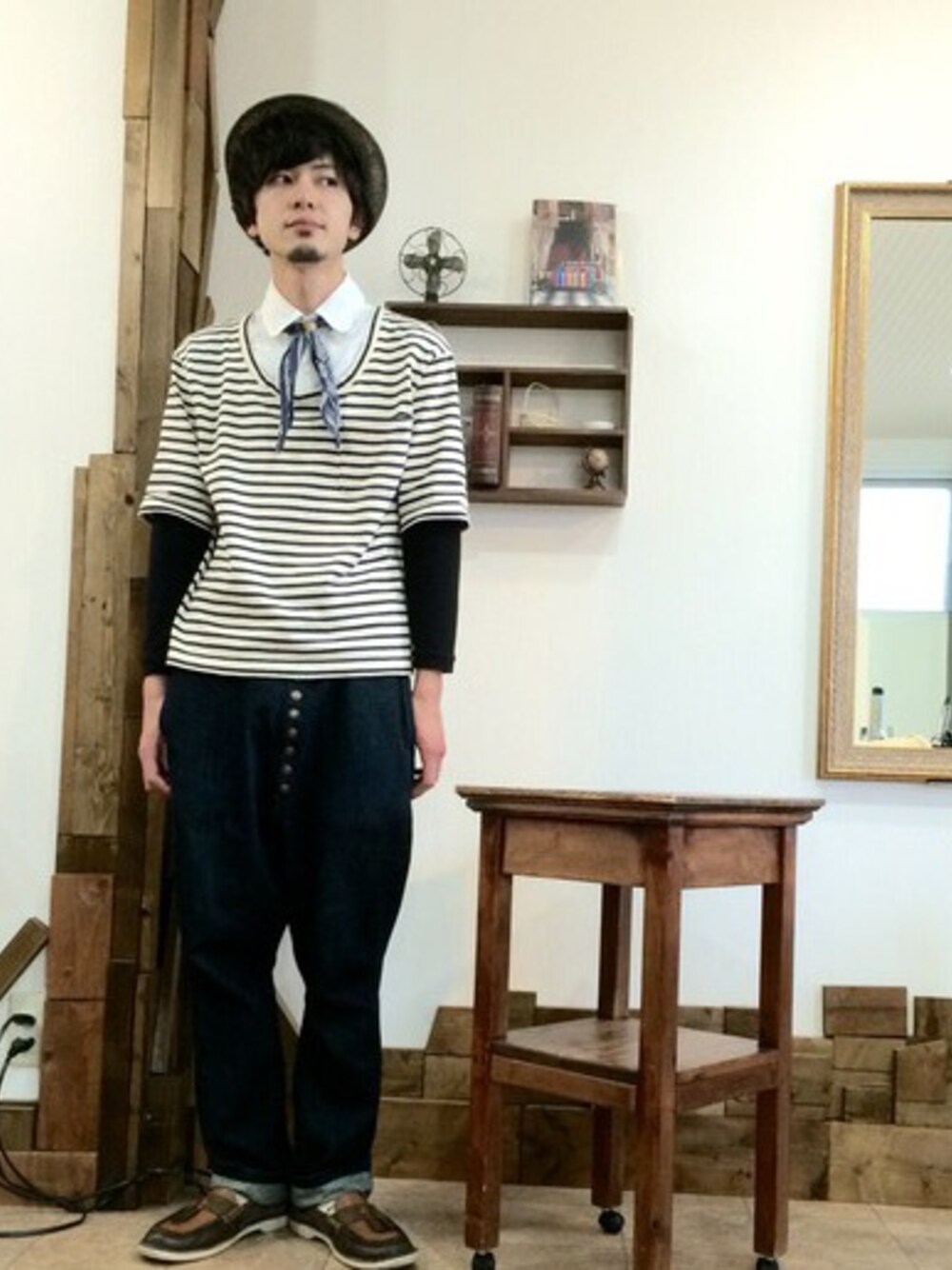 こんにちは、【札幌の美容室 ZEEN】トップスタイリスト 山内です。☆ 暖かくなると、よくやるマリン系コーデです^ ^ ボーダーに60'sのVINTAGEのバンダナを合わせて船乗りっぽく ww 雨が降ってなければ、ホワイトパンツの予定でしたσ^_^;