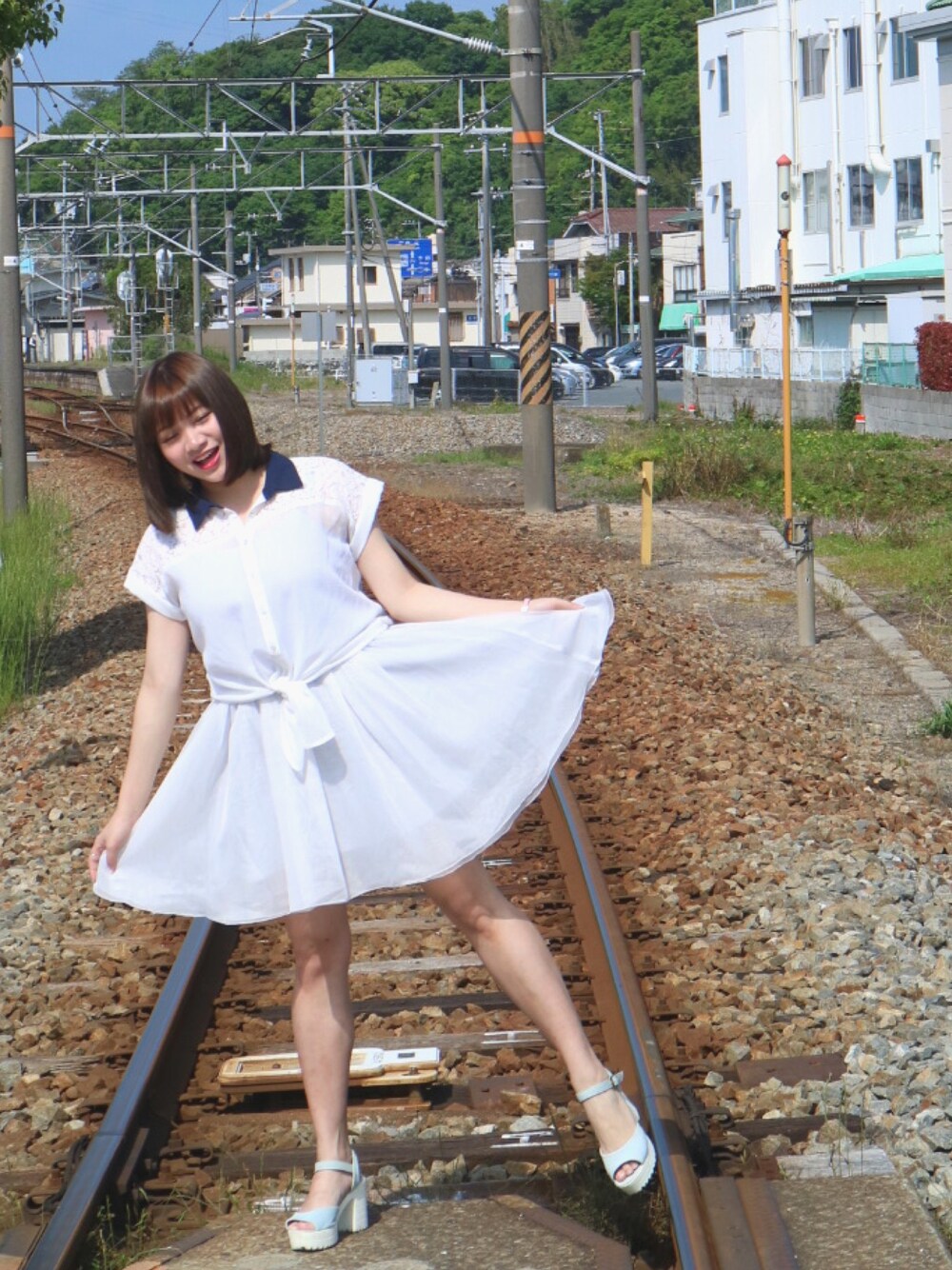 白色系的與夏天超搭! 裙子是輕薄紗質~舒服透氣又充滿夏日感 露趾涼鞋可令視覺上有長腳哦!