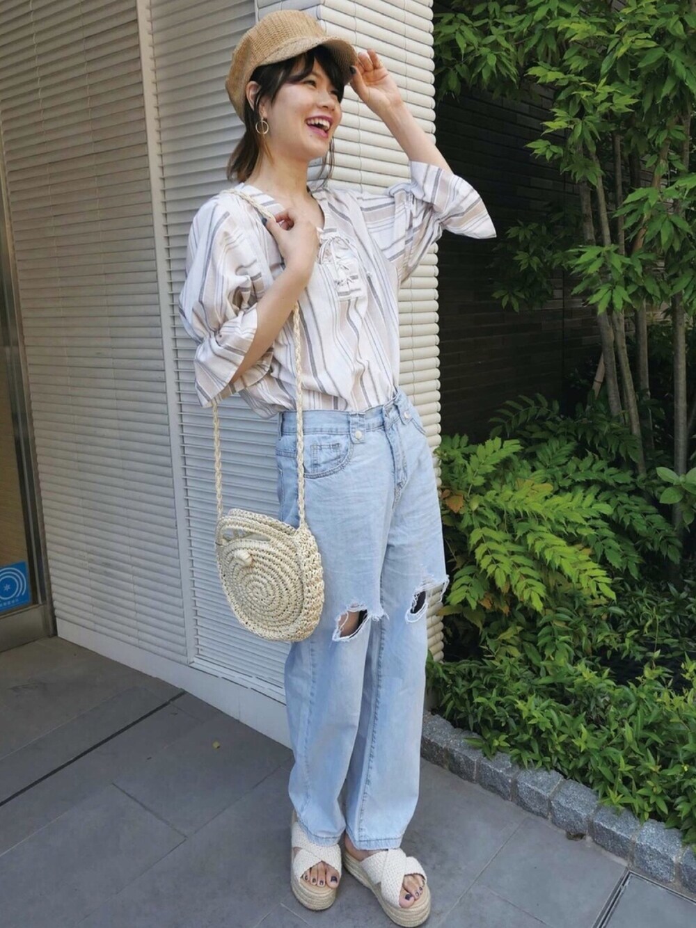 あかね(CORNERS)のキャスケット「ストローキャスケット」を使ったコーディネート