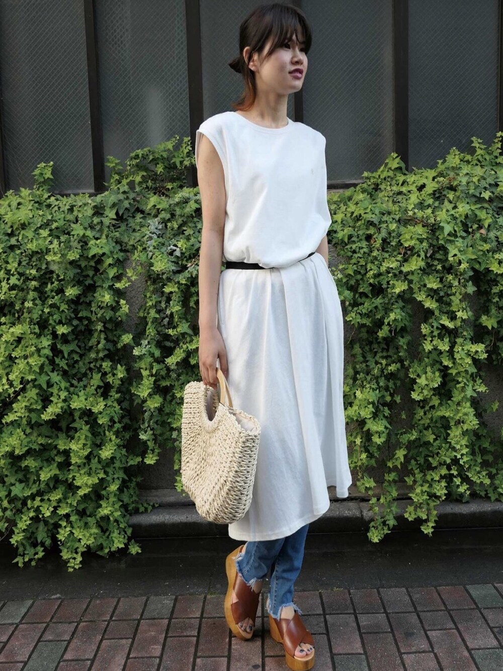 あかね(CORNERS)のワンピース「SRロゴ刺繍ノースリーブタンクワンピース」を使ったコーディネート