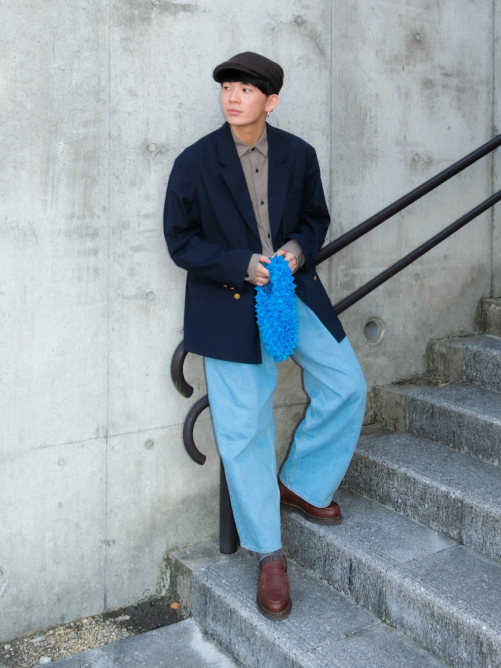 ご覧いただきありがとうございます! ブレザーをハンチングやローファーといったクラシックなアイテムと合わせたスタイリング。 おじさんみたいなエッセンスを加えたコーディネートが渋くてかっこいい✨