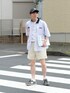 idakaのシャツ/ブラウス「【a】ブロードストライプワッペンワーク半袖シャツ」を使ったコーディネート