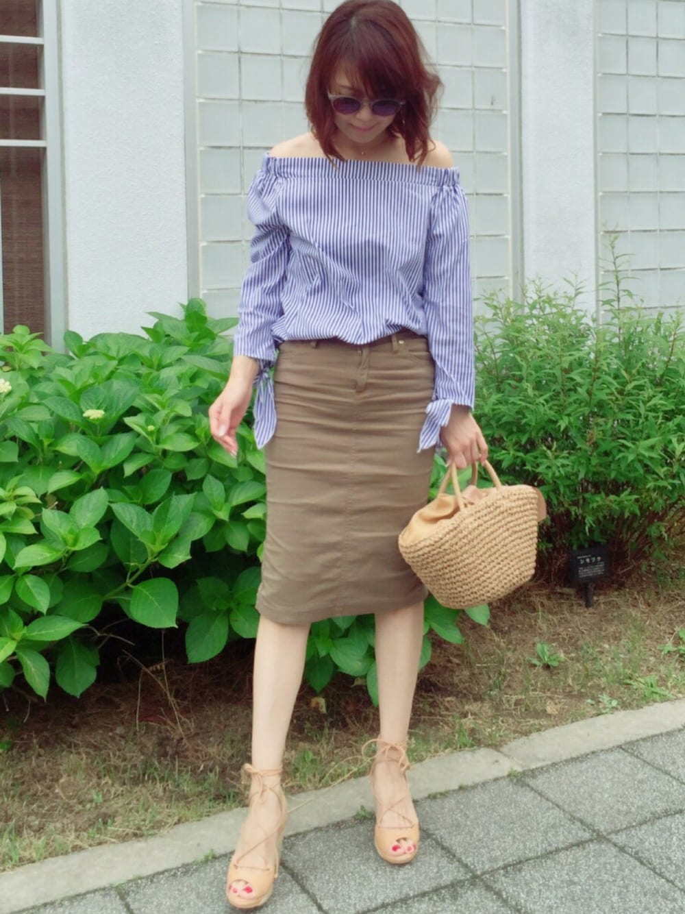 レディスタイル♡ 小物はベージュで! オフショルブラウス イデアルーチェで大人気です! http://idea-luce.net/