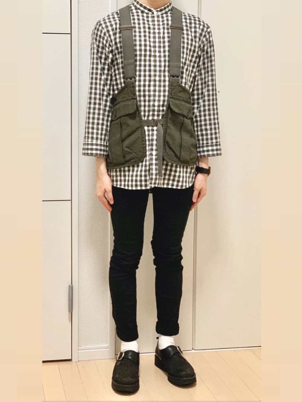 どこか品のあるハンティングベスト ライフルとか担いだり、懐に手投げ弾を入れたくなりますね。かなり気に入ってるアイテムです。 ミリタリー系のアイテムを綺麗目に落とし込むことが最近の目標です。