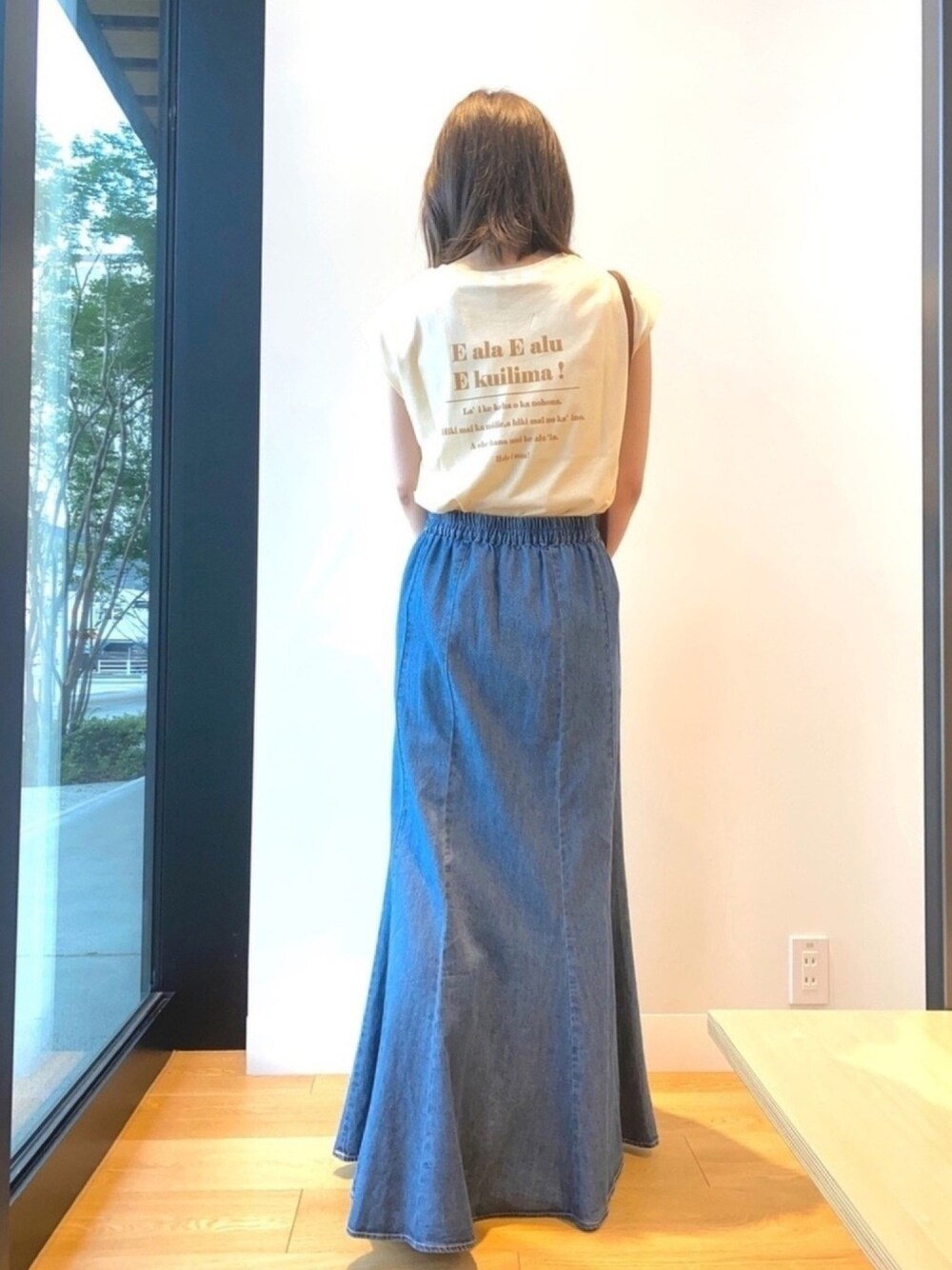 ide(URBAN RESEARCH COCOSA熊本)のスカート「デニムマーメイドスカート」を使ったコーディネート