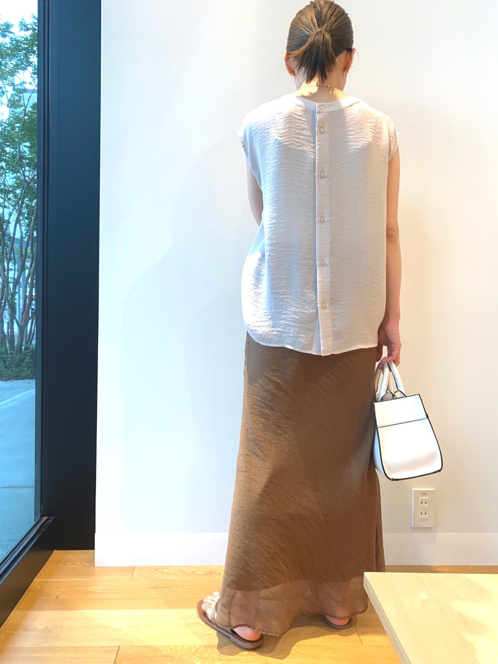 アーバンリサーチのブラウスをワントーンで合わせてみました。 デニムと合わせても🙆‍♀️ シアーバイアススカートは、足元の透け感が今年らしくて可愛いです◎