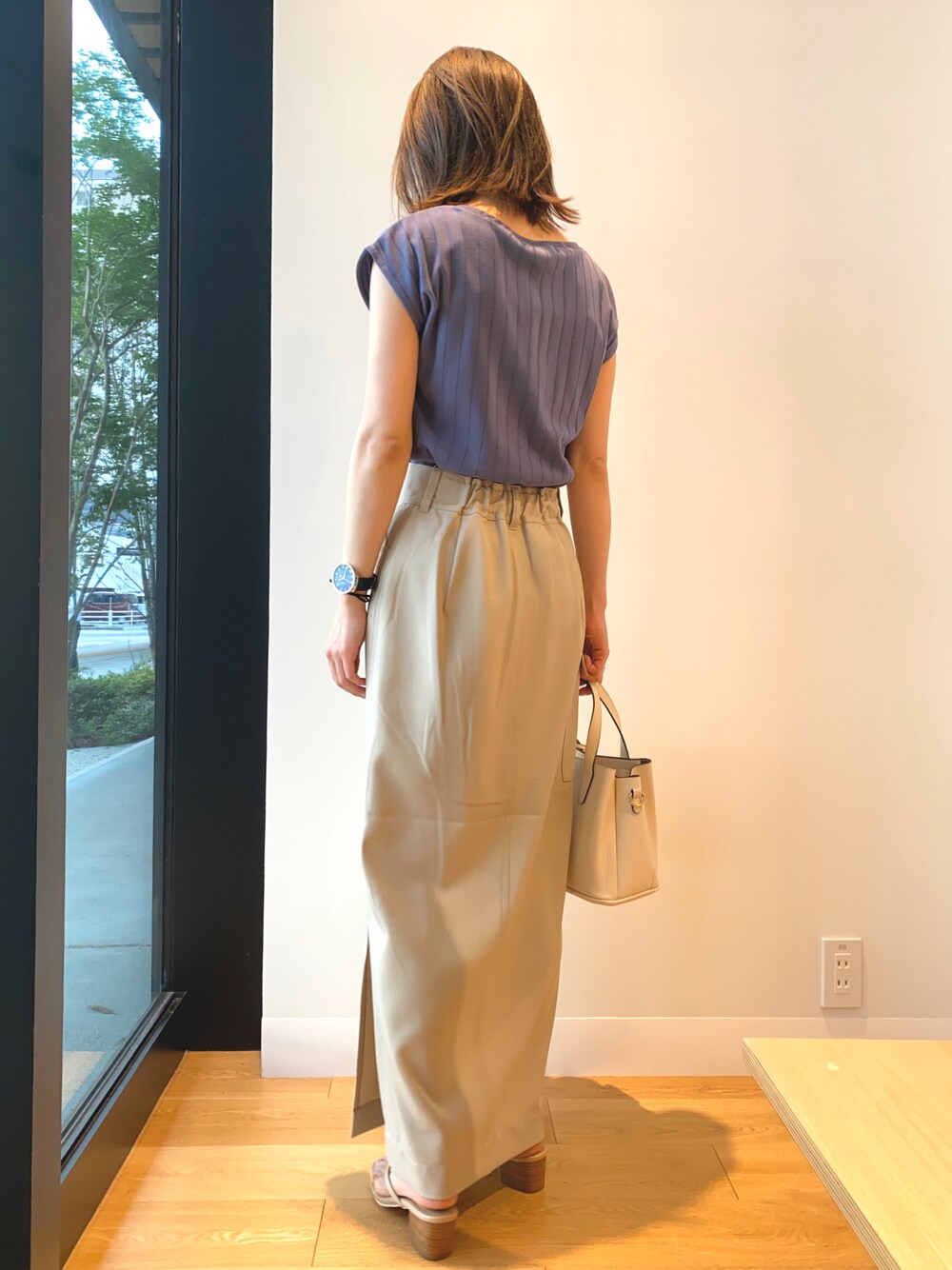サニーレーベルのフレンチTシャツにKBFのロングスカートでキレイめコーデ! 夏の味方! 汗ジミ防止&UVカット加工◎◎