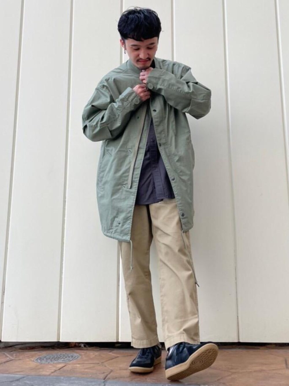 身長170cm 全てMサイズ着用 全身ミリタリーテイストのアイテムでまとめてみました。 引き続きトレンドのミリタリー×くすみカラーが今の気分。 ミリタリーテイストのアイテムながら、グリーンレーベルらしく、やり過ぎていないので、挑戦しやすいのでおすすめです!