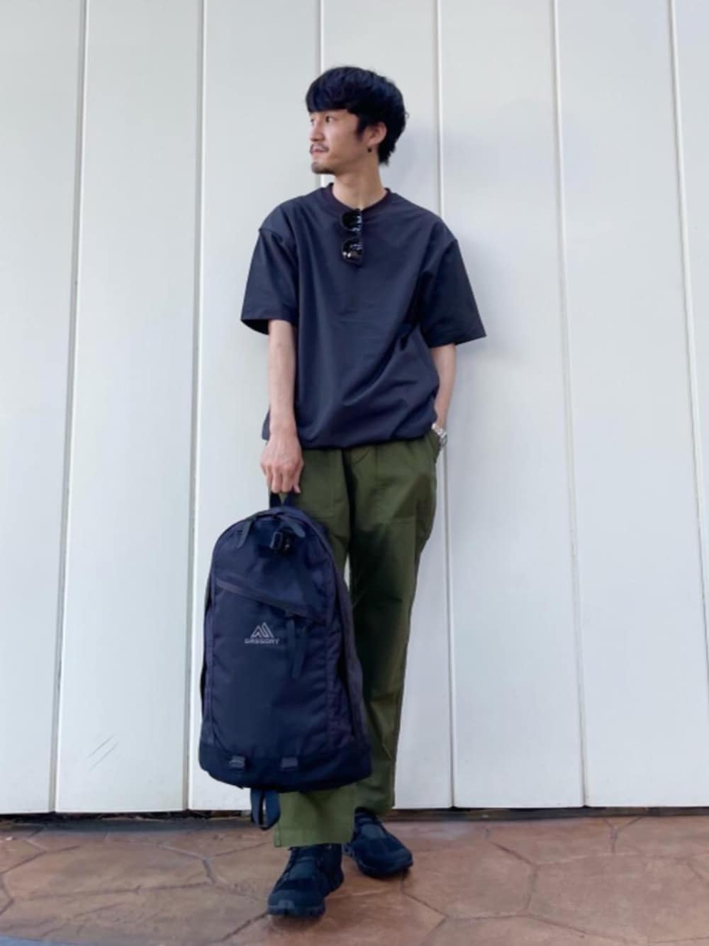 ●身長:170cm ●普段サイズ:トップス M / ボトムス S / シューズ 26.0cm 【サイズ感】 トップス:ややゆったり ボトムス:ややゆったり シューズ:標準的 【コーディネートポイント】 シンプルながらもさまになるアウトドアスタイルを演出しました。実際にキャンプなどで動きやすいように、ややゆったり目のアイテムを選択し、服装の汚れなど気にならないようなカラーで気兼ねなくアウトドアを楽しめるようなスタイリングでまとめております。 また、小物として、サングラスやバッグパックを合わせるのがおすすめです。