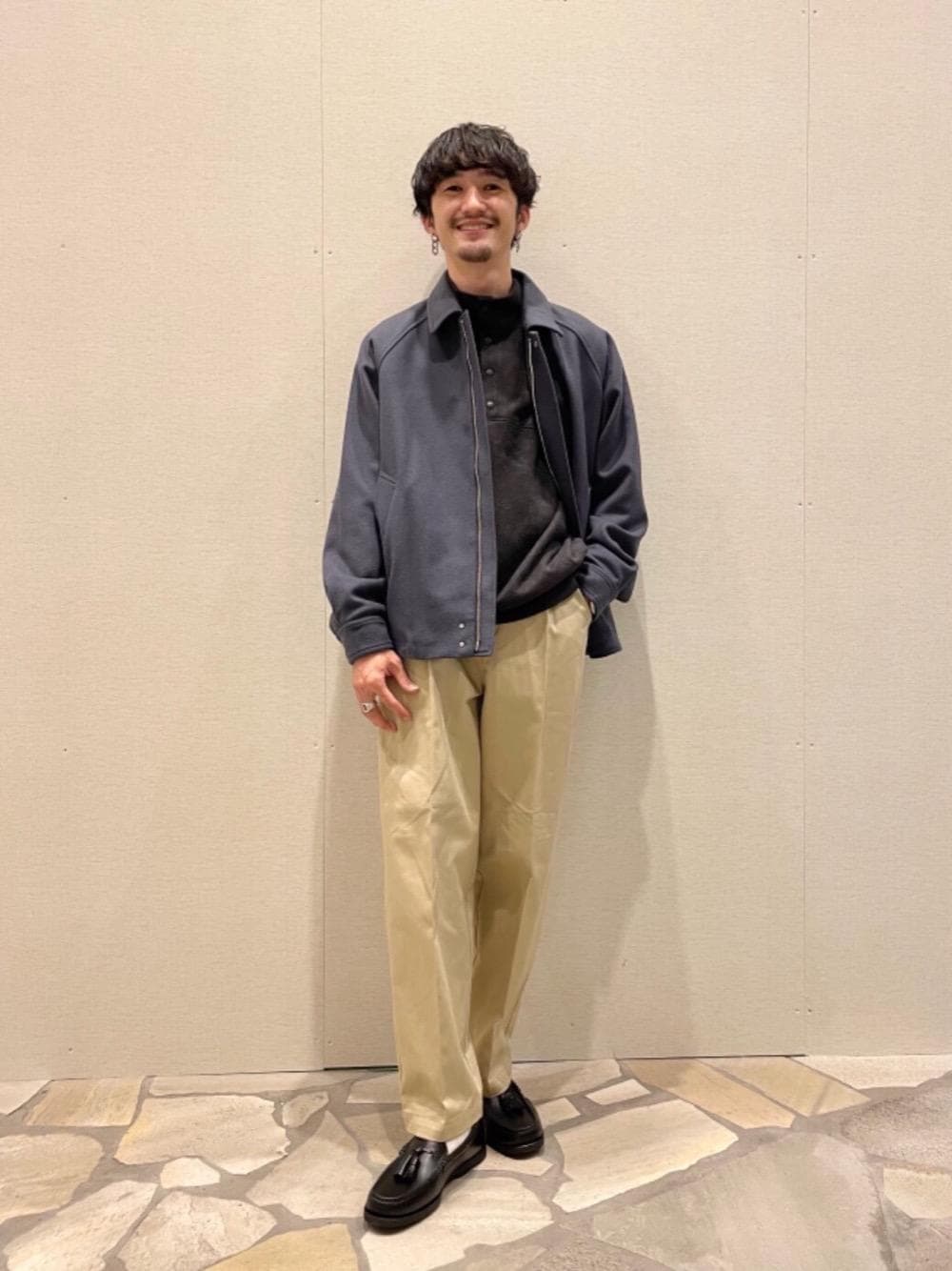 身長:170cm 普段サイズ:アウター M / トップス M / ボトムス S / 革靴 25.0cm 【サイズ感】 アウター:ゆったり トップス:ややゆったり ボトムス:ゆったり シューズ:やや細め 【コーディネートポイント】 全体的にクリーンテイストに仕上げました。アウターのメルトン素材と、トップスのスエードライク素材で遊び心を演出しました。 首元はハイネックかつ、スナップボタンがアクセントになります。 アウターを普段よりワンサイズ下げて、あえてジャストサイズで着ることで大人っぽさを演出しています。
