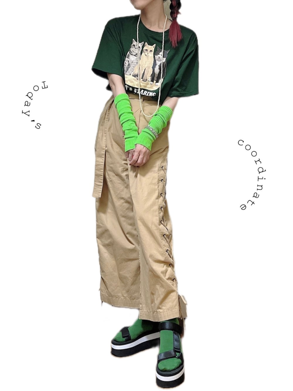 くぅのTシャツ/カットソー「3匹のネコプリントTシャツ」を使ったコーディネート