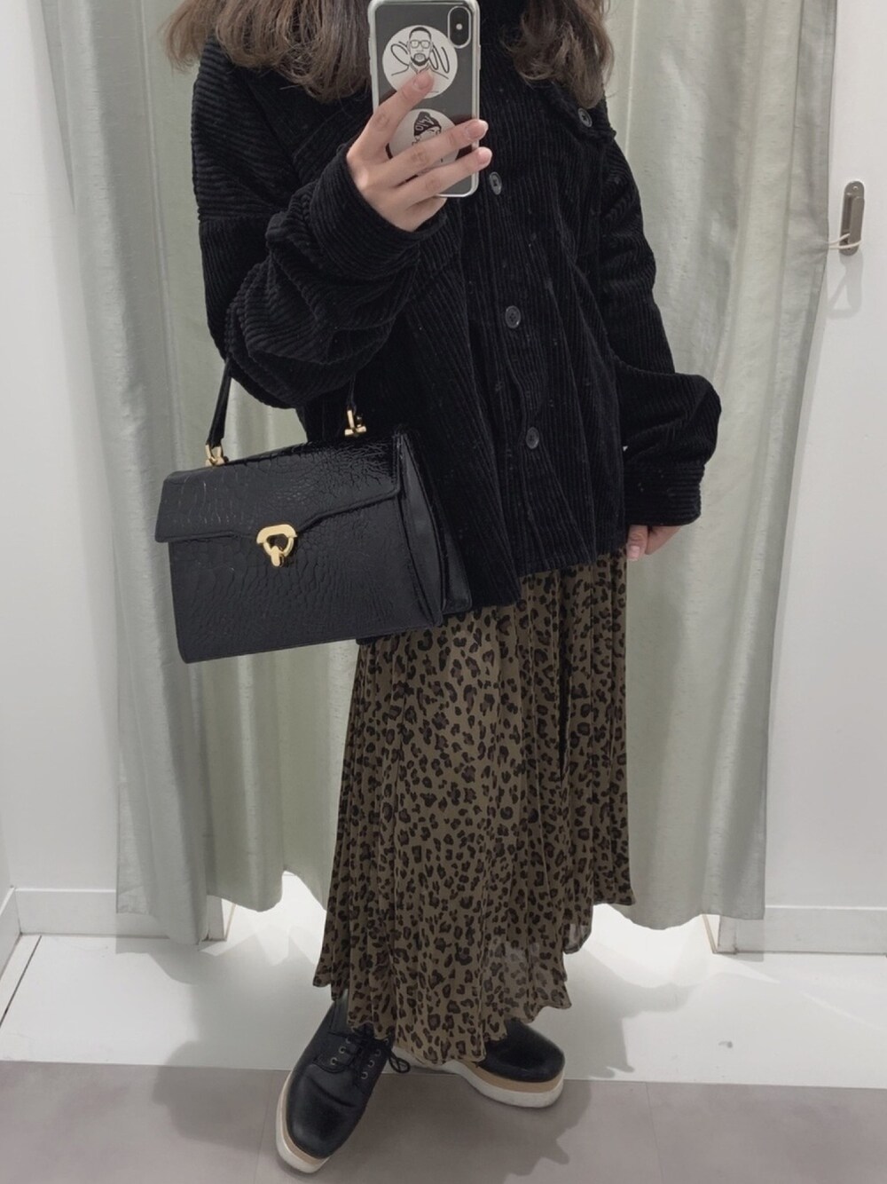 . すごく履きやすくて大好きなGUのレオパードスカート。 . 割と前のだけど、同じ形で他の柄あったらよかったな〜〜って思うくらい履きやすくて好きな形なんです✌︎('ω'✌︎ ) . コーデュロイのジャケットはForever21のもので2000円しないで購入しました! よい買い物! . お鞄はお母さんから頂いたワニ皮ハンドバッグ🐊 .