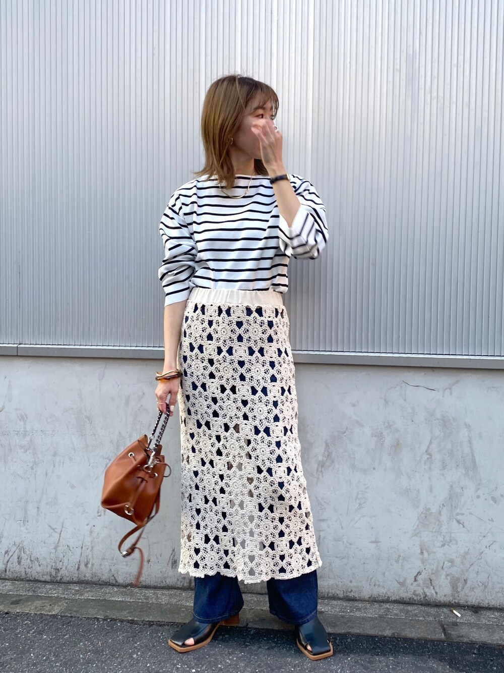 春らしいボーダー×デニム👖 レーススカートをレイヤードして 大人カジュアルコーデにしてみました♡ Instagram ▶︎ @ike_lemage