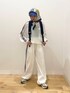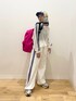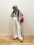 着用コーデ:26件ご覧いただきありがとうございます😊 メッシュトップスとサイドラインワイドパンツの色合いがマッチしていてセット風が可愛いです🙆🏼🤍 白のワントーンに柄スカーフやパキッとピンクのリュックが映えてくれました💖💖