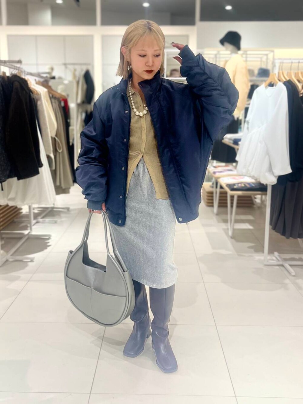 ミク(SENSE OF PLACE イオンモール広島府中)のブーツ「『消臭』スクエアトゥストレッチロングブーツ」を使ったコーディネート