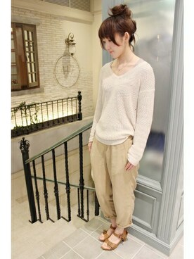 「SLOBE IENA(スローブイエナ)のC/D畦 BIG ニットプルオーバー。(ニット/セーター、ホワイト系)」を使った、イエナスローブ新宿 スタッフ2さん(レディース・160cm)の春コーディネート