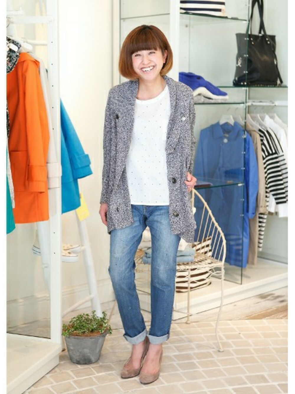 イエナスローブ渋谷 スタッフ1のカーディガン/ボレロ「ショールポンチョカーディガン。」を使ったコーディネート