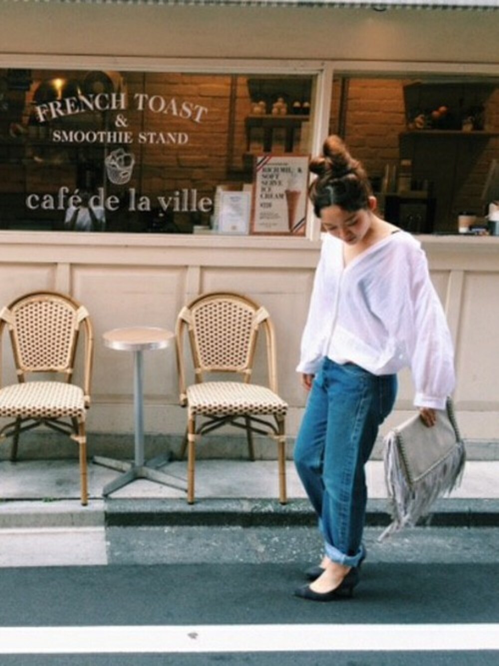 Happyのシャツ/ブラウス「MASSCOB ソデフリルブラウス。」を使ったコーディネート