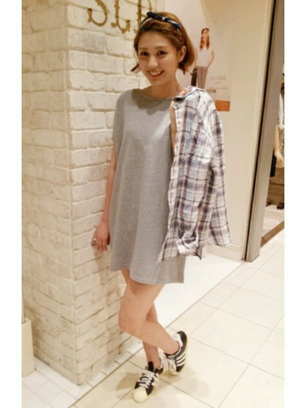 ミニワンピ×シャツのスタイリング 羽織ったり、肩がけしたり、腰巻きしても可愛いですよ
