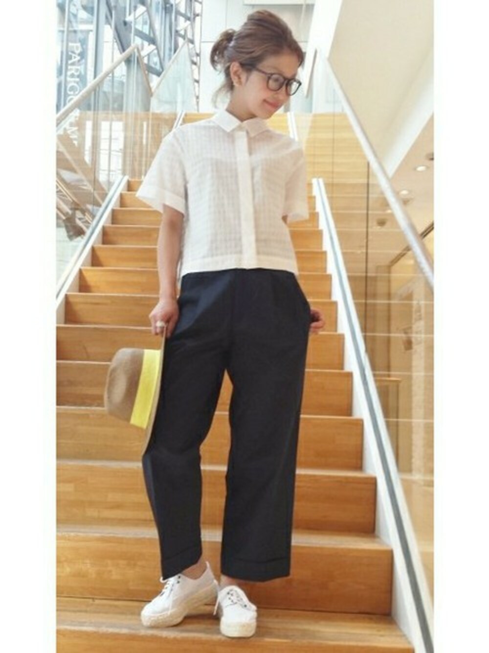 帽子×メガネ♪ お出かけに着て行きたくなる透け感のあるシャツ パンツとレースアップシューズを合わせたボーイズコーデです☆