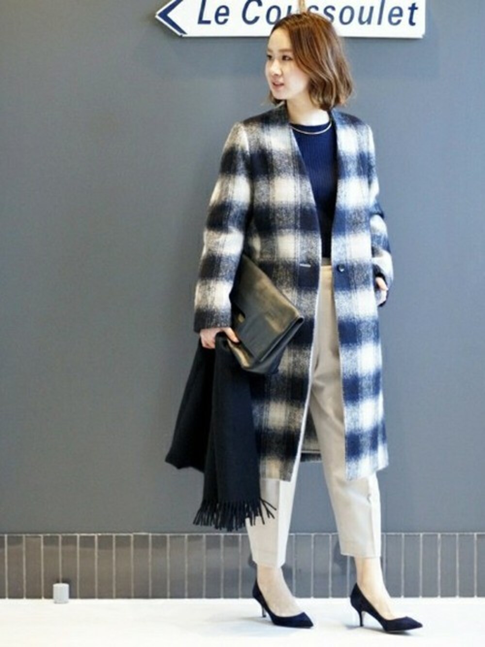 Giiのその他アウター「Ricceriチェック Vネックコート◆」を使ったコーディネート