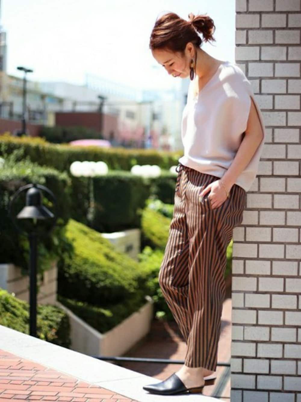 今年らしい色味のストライプパンツ。 シンプルなコーディネートの主役になるだけではなく、後ろだけゴムになっているので履いた時のラインがとてもきれいです。