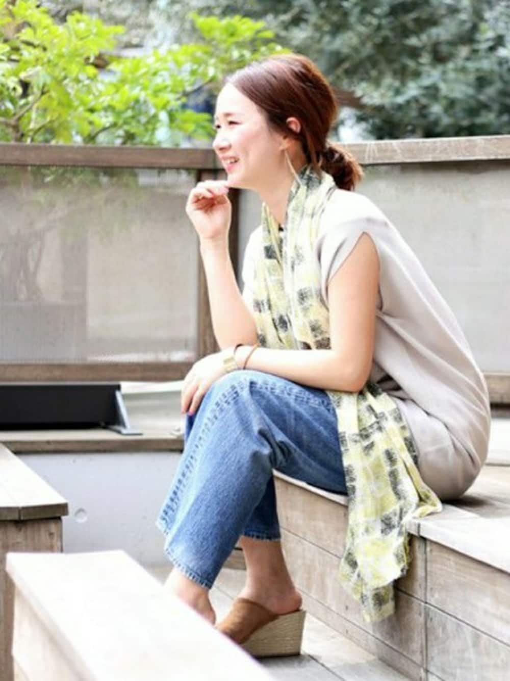 Giiのストール/ショール「BECK SONDERGAAD ドット/シカク イエロー ストール◆」を使ったコーディネート