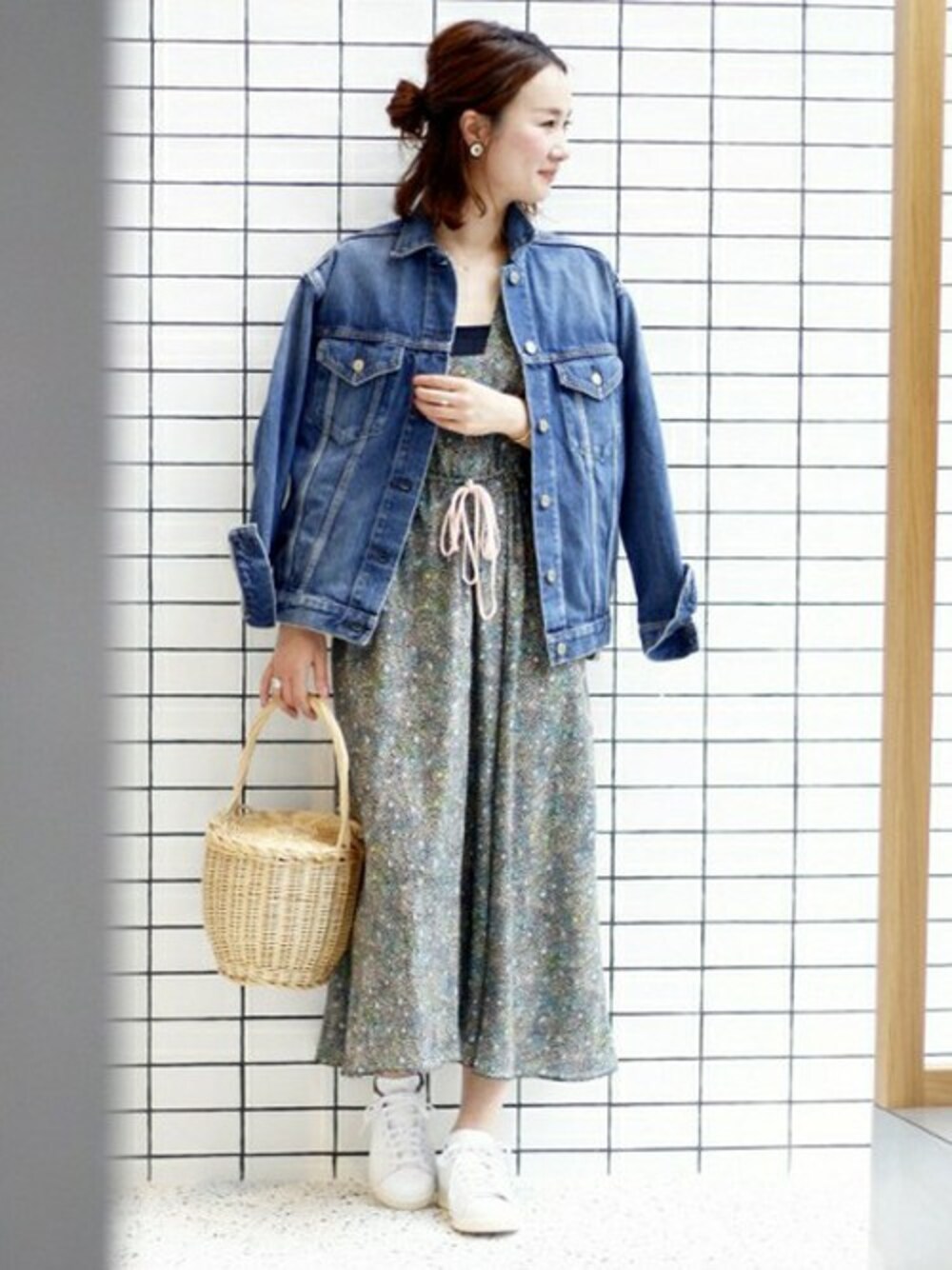 “adidas Originals STAN SMITH EF” for IENA フェミニンなワンピースには、スニーカーで外すのがおしゃれ。