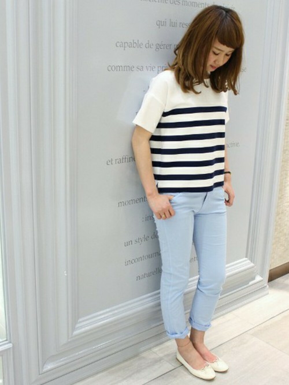 ボーダートップス×ブルーパンツで大人カジュアルなマリンスタイルに♪