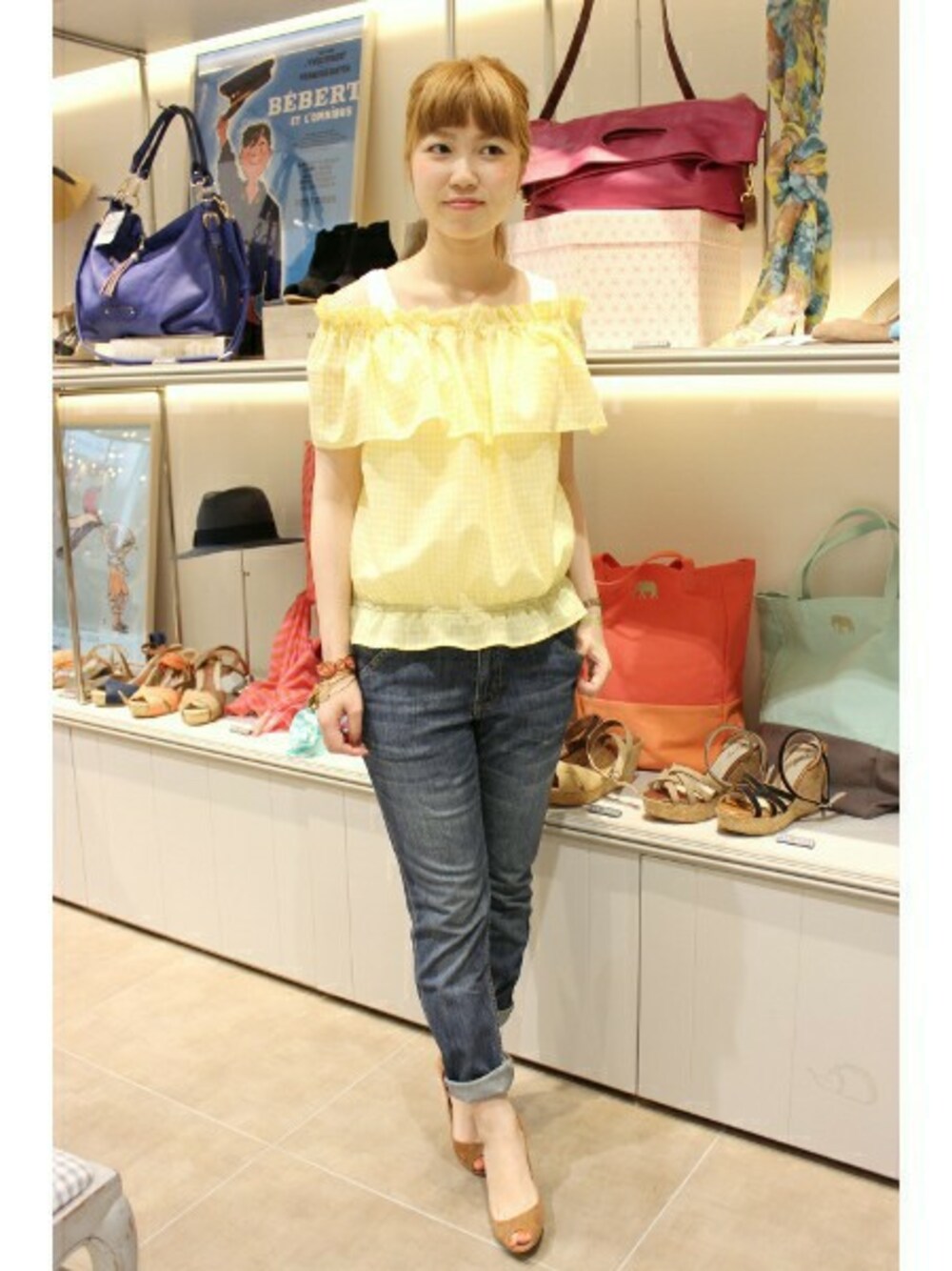 ビタミンカラーが夏らしいブラウスはデニムでシンプルに着こなすだけでも可愛いです