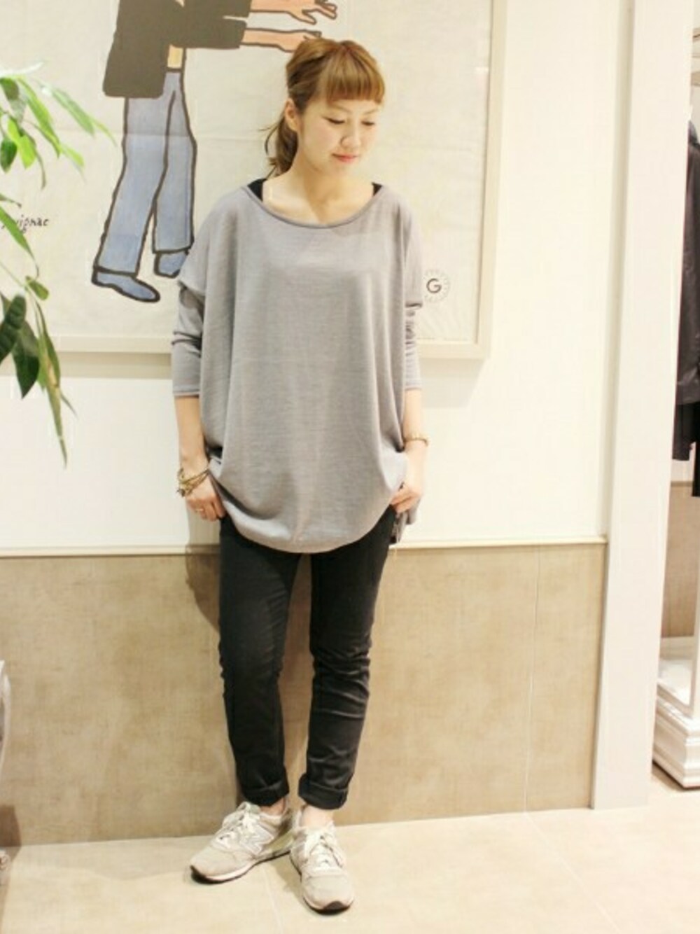 継続人気のビッグシルエットトップス スキニーパンツと合わせると全体がスッキリとまとまり、おすすめです スニーカーで遊ばせて♪