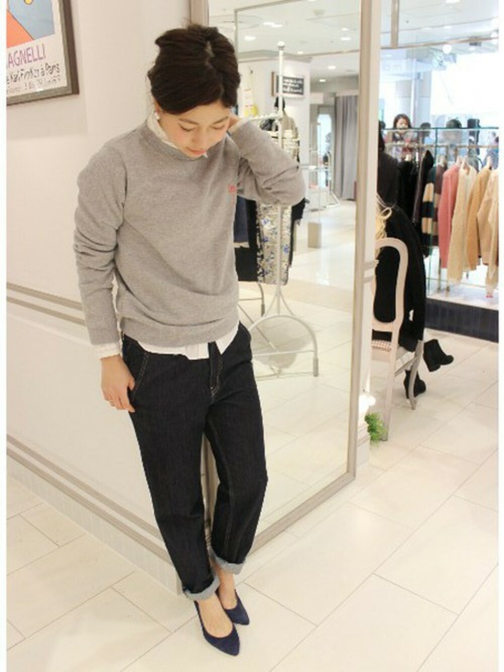 フロントにデザインされたフラミンゴ刺繍が可愛いスウェットプルオーバー♪♪ ボトムスはテーパードのシルエットがすっきりと綺麗に仕上げてくれます