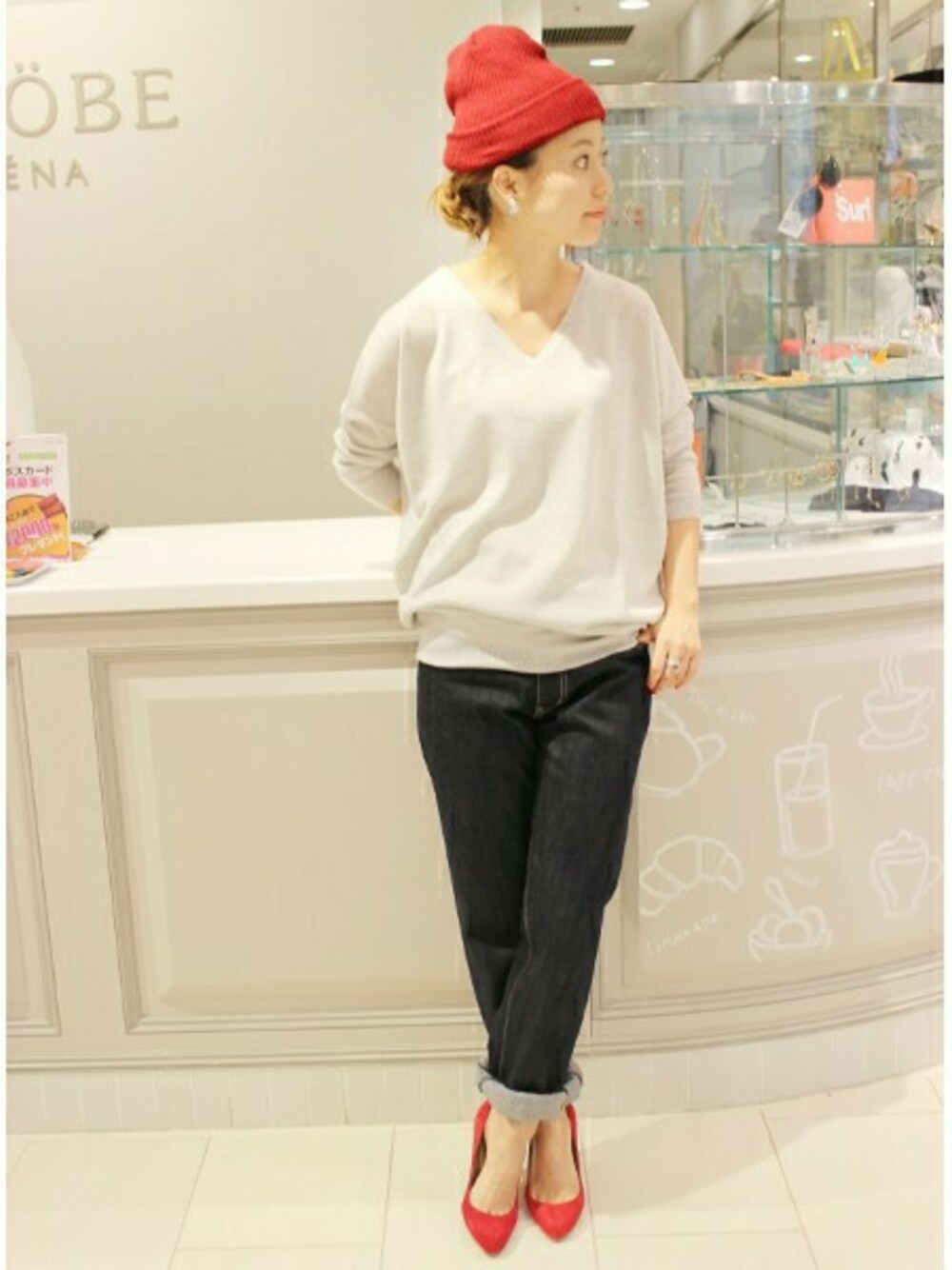 イエナスローブ町田 スタッフのニット/セーター「LEONORA V/N ニュアンス プルオーバー。」を使ったコーディネート