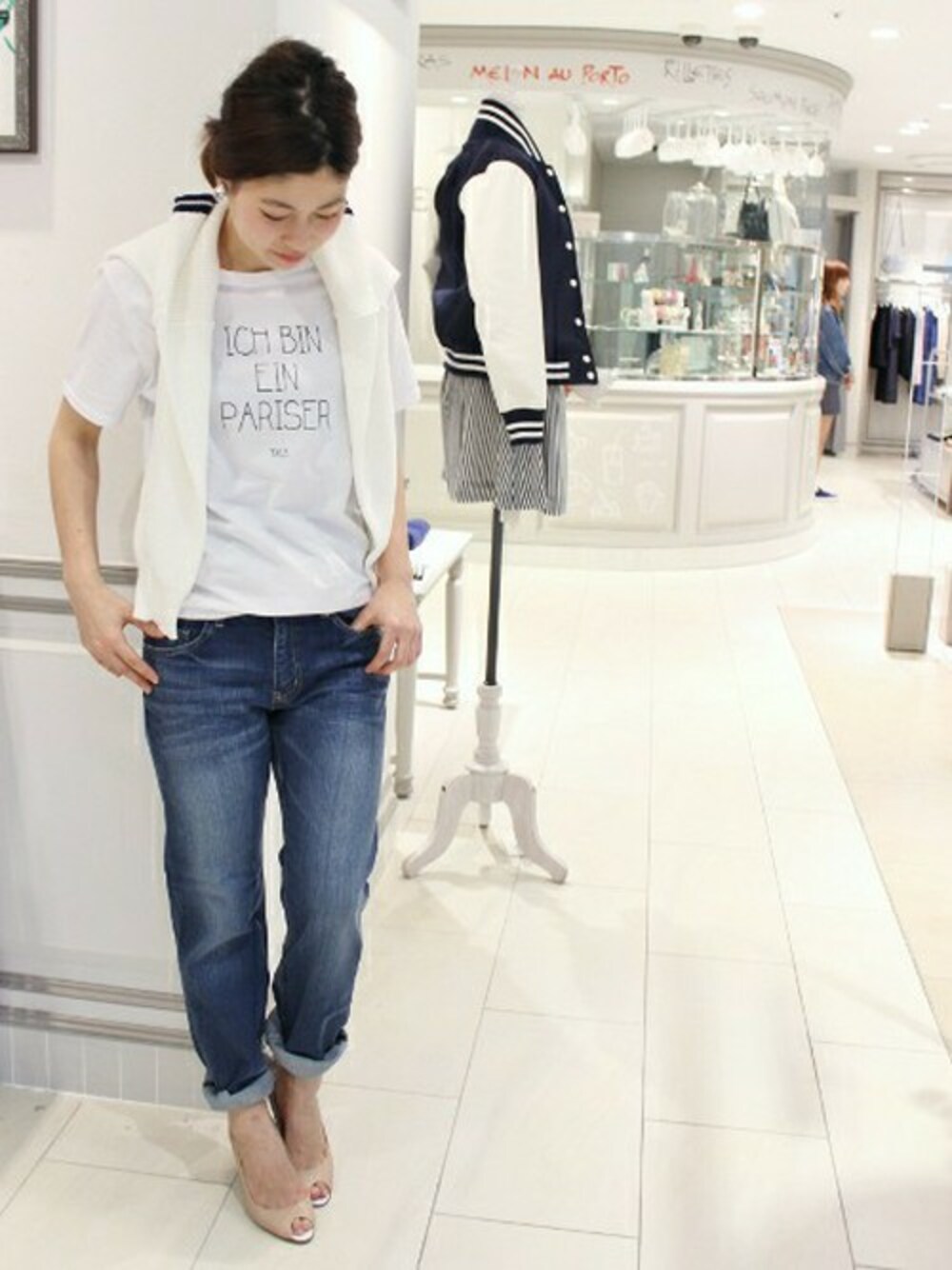 ボーイフレンドデニムはロールアップ+パンプスで綺麗めカジュアルに♪