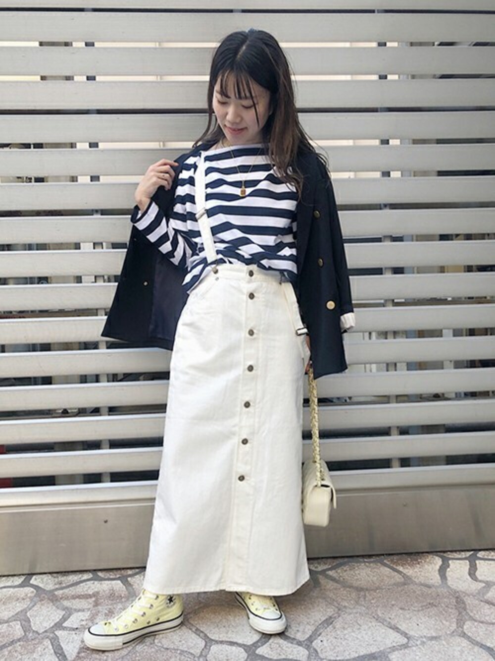 ◆LEE SLOBE別注サスペンダー付きスカート サスペンダーが取り外し可能で タイトスカートとしても使えるので 着回し抜群。 ボーダーのカットソーにスニーカーで ベーシックな合わせですが、 バックでポイントをプラスしました。 ***************** 年齢:20代後半/身長:157㎝/体型:普通/普段のサイズ:Sサイズ/着用サイズ:M サイズ感:普段着用Sですが、カットソーを入れて程よいゆとりでした。 素材感:軽いのでサスペンダーがついていても重たくありません。 着心地:透け感あり。ペチコートや長めのカットソーインするのがおすすめです。 *****************