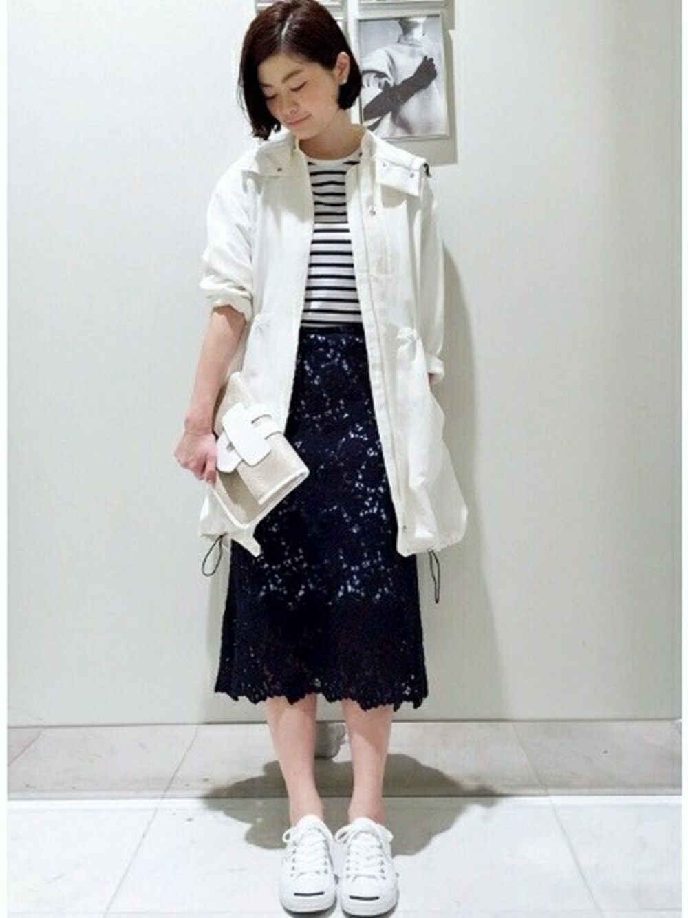 ボーダーカットソー+レーススカートで! どうしても外せないボーダーは、フランス・シャンテクレール社の上質なコットンを100%使用した逸品☆ レーススカートに合わせてシャツや小物使いで個性を引き出せるコーディネートです!!