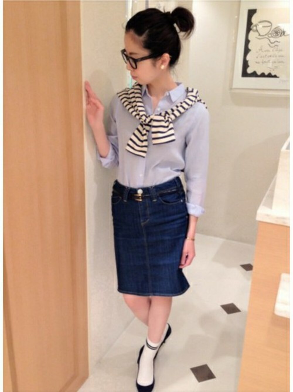 定番のボーダーはキレイ目カジュアルにもスタイリングできて、使い勝手のいい一枚! ボーダーは着るだけでなく、肩にかけ、アクセントに使って頂いてもステキです♪